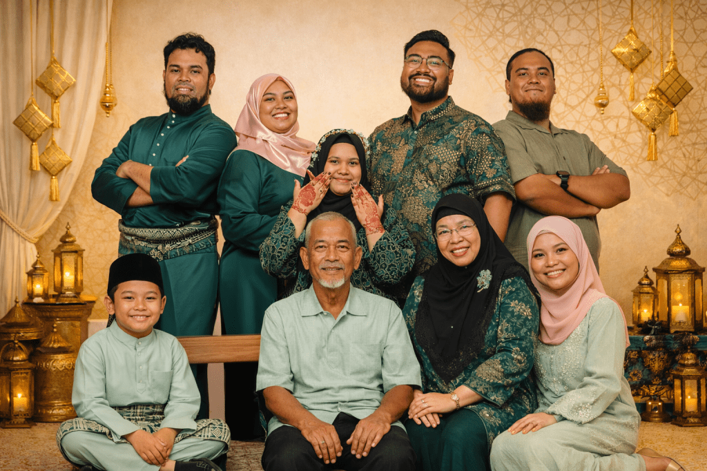 Festive seasons like Hari Raya are more than celebrations—they are moments when families come together across generations. A family portrait freezes that moment in time.