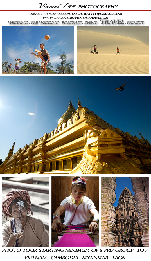 Backpacker at heart started from year 2007, I’ve traveled to countries like Vietnam (Saigon – Hanoi) , Cambodia (Siem Reap) , Myanmar (Yangon-Mandalay-Bagan-Inle Lake) and Laos. I’ve gained well vast of knowledge being your travel guide / photo guide to these countries. This include arrangement of accommodations, transport, entrance tickets to heritage places (if any), meal, model shooting (upon request) and hidden paradise of these beautiful countries I’ve came to know throughout years of traveling & the sharing from the locals. Don’t take ordinary travel photos, take photos with stories that attach to your heart & journey experiences. Don’t be an ordinary tourist not learning the local cultures & foods that you should try. I will guide you in these areas from my past experience and most importantly enjoying the whole trip with a group of people shared the same interest (Backpacker at heart) & making new friends : )