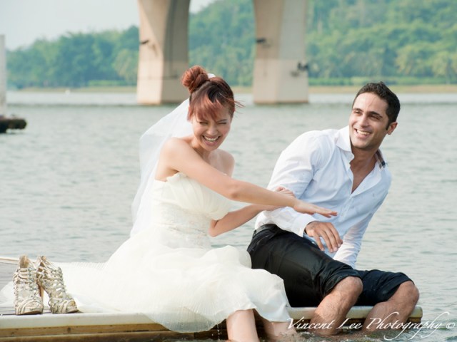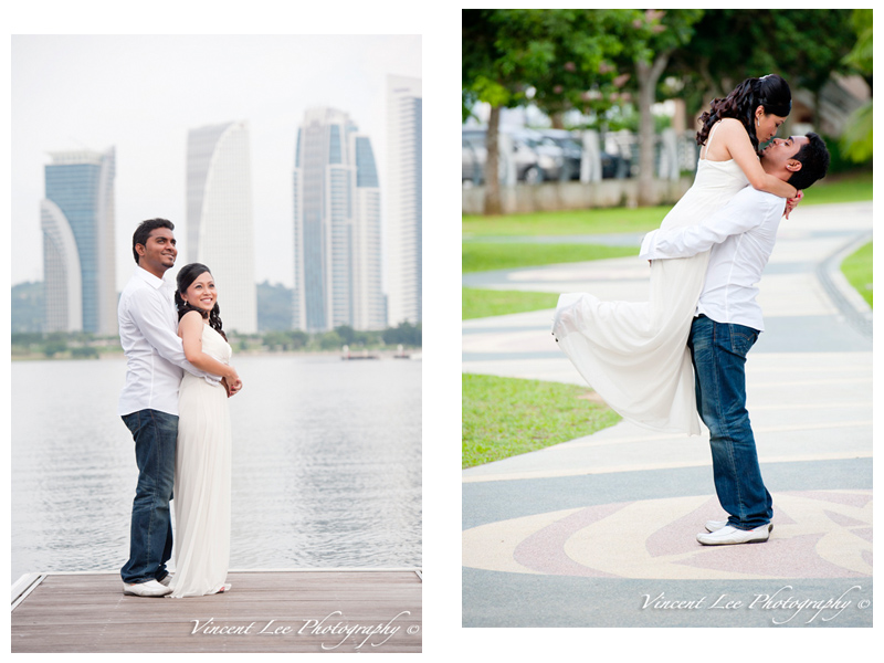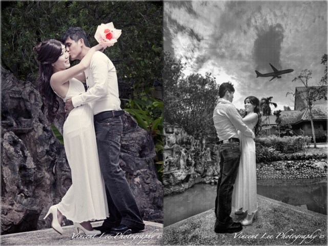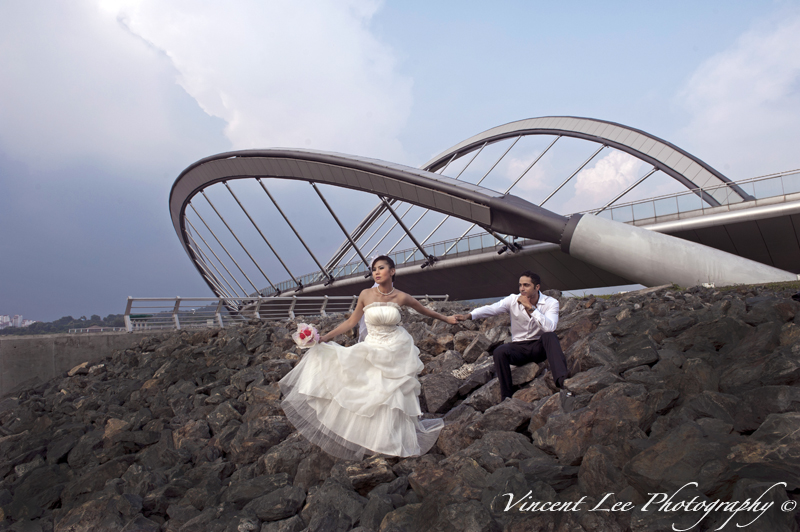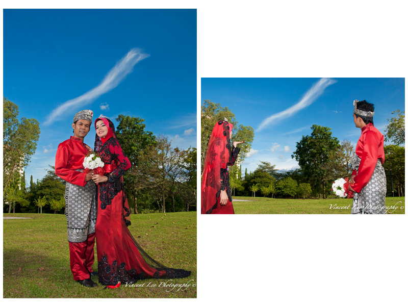 Putrajaya – Looking at my watch, my client won’t be arriving shortly so I thought give my car tyre some air at the petrol station and marks the beginning of chaos throughout that day, almost. One of my car back tyre went flat during the process of adding air , weird isn’t it? The four knots tighten on that flat tyre are so tight from the last car mechanic at car service. I’ve tried to loosen the knots using the came-with-the-car purchase-useless cross tool with my full strength but still failed. Scrapped off a small chunk of skin on one of my finger during the process. Luckily its the finger on the left hand, not my shooting right hand. My clothes are soaked up with sweats when my client arrived. Left my car at the petrol station and hopped in my client’s car for the shoot of the day. My shoe bottom came off and I had to borrow my client’s extra pair of sport shoe in his car. Fortunately the shoe sizes matches my feet. The shooting went on smoothly which is something I’m most grateful for that day. It only starts raining towards the end of the shooting. The rain turned heavier by the time I got back to the petrol station feeling all alone waiting the car mechanic called earlier to arrive. Waited almost an hour and get being yelled at when I make a reminder call to the the car mechanic if he’s arriving any time soon. I didn’t want to fight back with him cause I need his man to fixed my car’s tyre. An hour later they showed up, he left one of his man with me and they have better tools as it takes them less than 10 minutes finishing changing the tyre. I really need to get one of their tools at ACE hardware shop one of these days. Last and final, I couldn’t have the burger whicht was advertised in the TV commercial that makes you shines like a celebrity at the KFC outlet because the middle aged woman in front of me not only took her entire 15 -20 minutes ordering her food but also snatched the last Double Zinger burger from me. Talk about tough love on a day, this is certainly one of them. However, I’m glad I kept my head cool not to be bothered by this chain reactions of unfortunate mini-series one leading to another and finished what I came out for that day which is capturing the love story of my clients. Besides, I’m just grateful that The All Mighty above was mercy enough and gave me the daylight needed for the shoot before it turned into a wet cacophony. Thank you : )