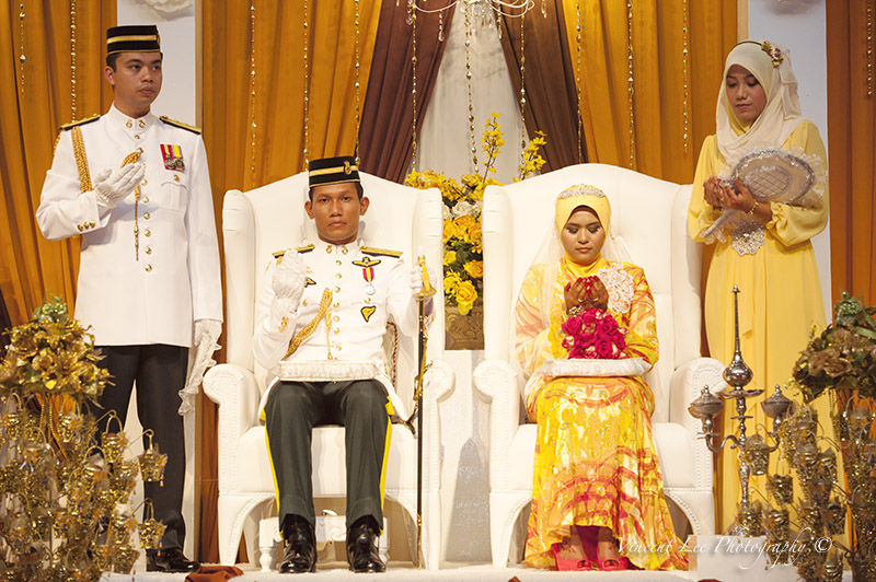 The couple are considered royalty for the day, where various royal customs are performed for them, including musicians playing court music a display of pencak silat.
