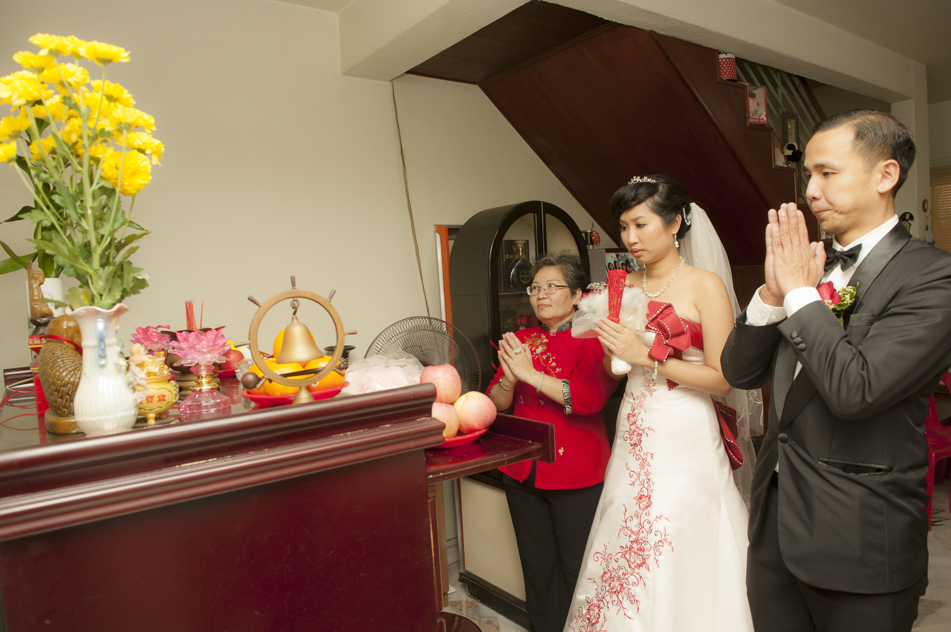 Hand tied wedding bouquetWedding dressGetting ready for the big dayChinese wedding gamesAsking for the ancestor blessingThe dateNew chapter of lifeTraditional “Yum Sing” , a toast to congratulate the wedding coupleThe game for the groom to “smell” and identify his newly married wifeThe game for the groom to “smell” and identify his newly married wifeThe kiss
