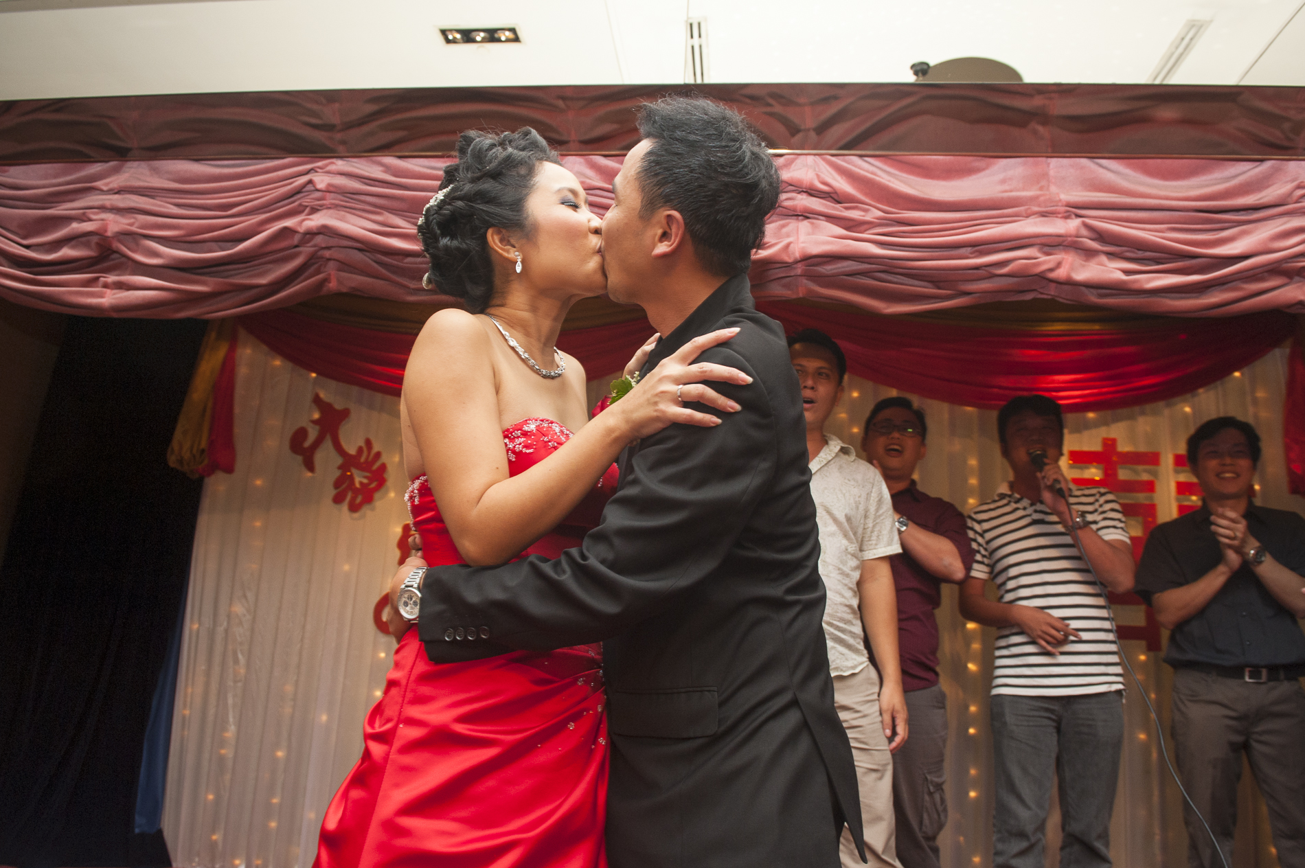 Summary: Have you ever imagine how it will be like if were to host your own wedding dinner at your own school hall? That’s where my client & friend (bride) chose for her wedding dinner venue. I personally think it’s sweet experience. The thing about small town’s wedding dinner (actually it’s not small, over 60 tables) is always its people with the dinner environment. People there actually exchanging conversations with one another instead of busying staring at their phone & gadgets. Children ran around as they should be. What surprises me on that night or should I say in a Chinese wedding dinner is that there’s actually a dancing floor for everyone. I’ve seen the dance rehearsal from the bride’s parents (members of dancing academy, how cool is that!) and their efforts paid off ! They put up a splendid performance on the dance floor. It is all party after that : )